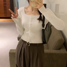 비비에모 여성용 슬림핏 버튼 니트 숏 가디건 06481