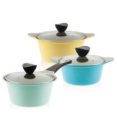 키친웰 벨로스세라믹코팅냄비 3종 세트, 혼합 색상, 양수 냄비 16cm + 20cm + 편수 18cm