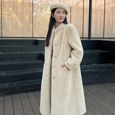 여성 롱 램스울 코트 캐주얼 가을 겨울 뽀글이 자켓 루즈핏 도톰 상의 아우터 기질 여자 하프 후리스 코트 CY