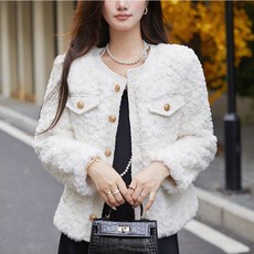 ORZQU 가을 겨울 여성 라운드 뽀글이 코트 울 플리스 노카라 도톰 코트