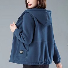 ORZQU 봄 여성 후드 집업 자켓 플리스 자켓 중년 여성 루즈핏 캐주얼 코트