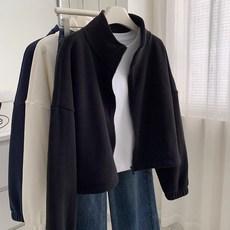 솔리드넥 오버핏 집업 자켓 플리스