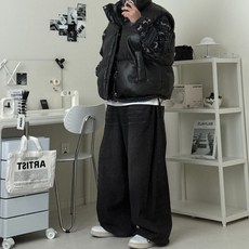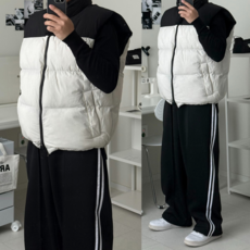 FINE ART 남성용 여성용 트렌디 면 조끼 왕도톰 빅사이즈 오버핏 패딩조끼
