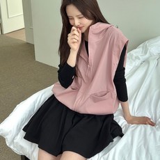 럭키제이 후드 바람막이 조끼 바스락 스트링 경량 베스트 여성 루즈핏 아우터