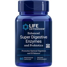 라이프익스텐션 인핸스드 슈퍼 다이제스티브 엔자임 프로바이오틱 포함 베지테리안 캡슐, 60정, 1개