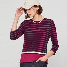 헤지스 여성용 스트라이프 면혼방 7부 소매 티셔츠 HSTS1C701