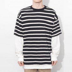 큐티에잇 남성용 MR 스트라이프 레이어드 티셔츠