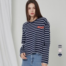살롱드욘 여성용 세일러 스트라이프 커프스 긴팔 티셔츠