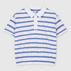스파오 아동용 스트라이프 크롭 카라 반팔 티셔츠