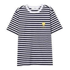 시에로 남녀공용 해피 스마일리 스트라이프 통기성 반팔 티셔츠 SH6TSU185