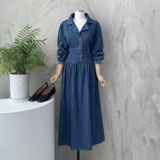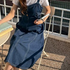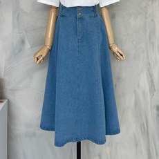 행복한여자 또또 투버튼 A라인 플레어 롱 데님 청 스커트