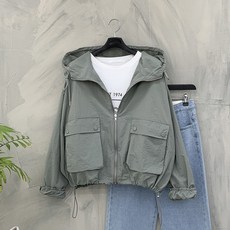 행복한여자 견장 포켓 세미 크롭 바람막이 집업