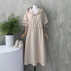 그리드 오픈 후드 끈조절 루즈핏 원피스
