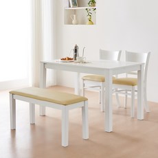 동서가구 캐빈 고무나무 원목 식탁 4인용 + 의자2p + 벤치 세트 방문설치, 화이트