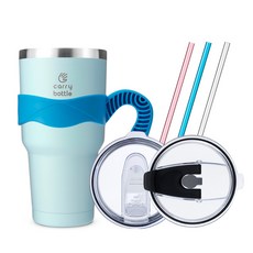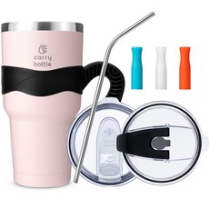 캐리보틀 스탠다드 스테인레스 보온보냉 텀블러 + 플립 빨대 뚜껑 + 전용손잡이 + 스테인리스 빨대 + 마우스 3종 세트, 핑크(텀블러), 투명(플립빨대뚜껑), 핑크(전용손잡이), 마우스(오렌지, 화이트, 블루), 600ml, 1개