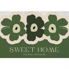 마이데일리 북유럽 플라워 레터링 현관 주방 카페트, 그린