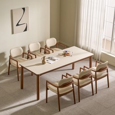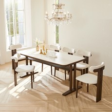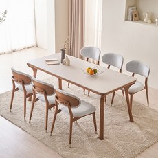 루시드퍼니처 샤를 세라믹 원목 식탁 6인용 + 의자6p 세트 방문설치, 샌드베이지 + 월넛(식탁), 베이지 + 월넛(의자), 일반의자 6