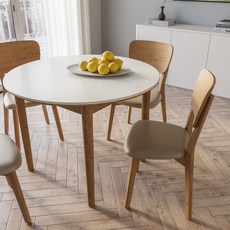 까사미아 카르네 세라믹 원형 테이블 1000 방문설치, 퓨어화이트(상판) + 내추럴(다리)