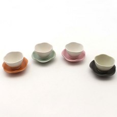 달소금 국산 도자기 무광 파스텔 꽃잎 찻잔 4종 세트, 라이트핑크, 민트, 연어, 차콜, 1세트