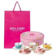 로얄알버트 100주년 컵앤소서 5인조 후기 1950~1990 세트, 혼합색상, 1개