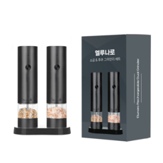 1+1 엘루나로 충전식 자동 전동 소금 후추 그라인더, 블랙+블랙, 1개, 60ml