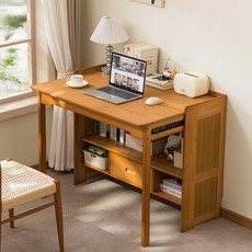 GOOD LIVE 원목 접이식 학생용 책상 접이식 테이블 소형 공간용 침대 옆 학습용, 브라운