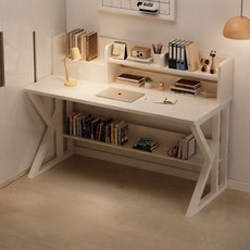 ANYOU 책상+책장 일체형 멀티데스크 학생책상 게이밍데스크 컴퓨터책상 크림 화이트 대용량 수납 듀얼 강화 프레임 모던 심플 디자인, 흰색
