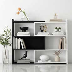 Bloom 원목책장 접이식 확장형 간편수납, 3단, 블랙 + 화이트
