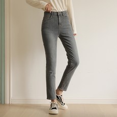 빼빼 여성용 워싱 스판 일자 데님 팬츠