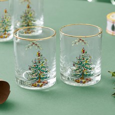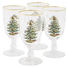 스포드 크리스마스 트리 고블렛 유리잔 4p, 골드 + 그린 + 레드, 1세트