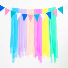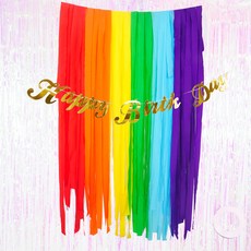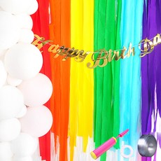 파티쇼 파티스트리머 레인보우 6종 + 커튼오로라 4p + 필기체 생일파티 가랜드 골드 + 컬링리본 10m, 혼합색상, 1세트