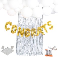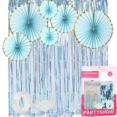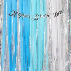 파티쇼 파티 스트리머 롤 3종 x 2p + 파티장식 은박수술커튼 홀로그램 4p + 필기체 생일파티 가랜드 2.5m + 컬링리본 10m 세트, 스트리머(스카이, 화이트, 블루), 커튼(실버), 가랜드(실버), 리본(단일색상), 1세트