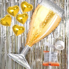 파티쇼 샴페인 골드커튼 4p + 샴페인잔 은박풍선 + 하트 골드 은박풍선 25cm 5p + 글루닷, 혼합색상, 1세트