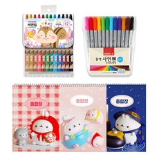 몰랑이 두툼 종합장 랜덤발송 3p + 모나미 모니주 12색 색연필 랜덤발송 + 동아 12색 사인펜, 혼합색상, 1세트