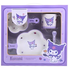 우허 쿠로미 식기 4종 세트 WH001, 큰 그릇 + 작은 그릇 + 컵 + 숟가락, 1개, 퍼플