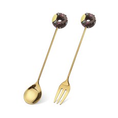Xingcheng 스테인리스 스틸 골드 도넛 디저트 스푼 포크 세트, 스푼 + 포크, 초콜릿, 1개