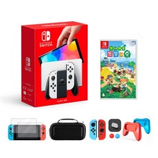 닌텐도 스위치 본체 OLED 화이트+모여봐요 동물의숲+필수 액세서리 풀 패키지, OLED화이트+모여봐요 동물의숲+10개 액세서리 풀세트
