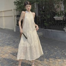 TOONIES 여성 여름 홀터넥 민소매 롱 원피스