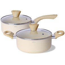 히라 세라믹 인덕션 크림 냄비 2종세트, 1세트, 편수냄비 18cm+양수냄비 20cm