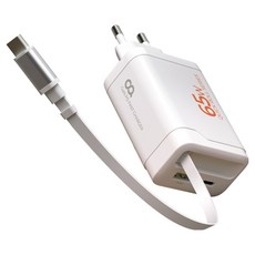 오아 퀵롤차저 65W GaN C타입 케이블 일체형 초고속 2포트 멀티 고속 핸드폰 충전기, 화이트, 1개