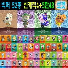 2026년 한글판 신캐릭 추가 동숲 52장세트 모여봐요 동물의숲 아미보 카드 5탄 올클+신상 4종 주민 모동숲 스위치 사이다 게임 칩, 1세트, 작은 카드, 5탄올클+신캐릭4종