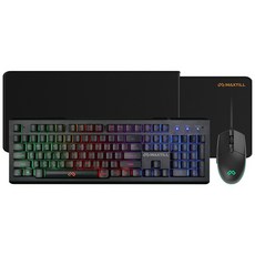 맥스틸 LED 유선 게이밍 키보드 마우스 장패드 세트, 블랙, TRON GMK330, 일반형