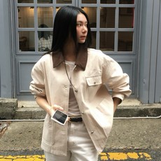 마인드브릿지 여성용 옥스포드 카라배색 워크 면 자켓 MZJP2201