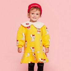 베베드피노 유아용 올 오버 마틴 퍼 칼라 저지 기모 원피스 BP34OD223