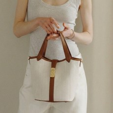 닥스 여성용 클라 소가죽 배색 캔버스 면 토트백 DCBA6E194IV