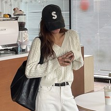 난닝구닷컴 여성용 라호즈 꽈배기브이넥 니트