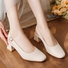 라뷰드 여성 데일리 스퀘어 미들힐 슬링백 정사이즈 통굽 구두 미끄럼 방지 버클 스트랩 슈즈 발편한 베이직 정장 신발 4.5cm