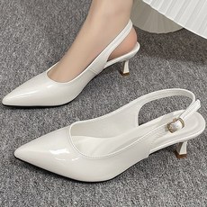라뷰드 여성 에나멜 스틸레토 슬링백 정사이즈 미들힐 통굽 구두 미끄럼 방지 밴딩 후크 스트랩 슈즈 발편한 베이직 정장 신발 6.5cm
