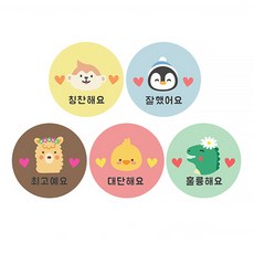 로로 애니멀 리무벌 칭찬 스티커 ver2 2cm 5종 x 120p 세트, 혼합색상, 1세트