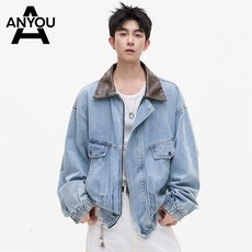 ANYOU 남성 춘추 데님 자켓 방풍 슬림핏 카라 디자인 캐주얼 아우터